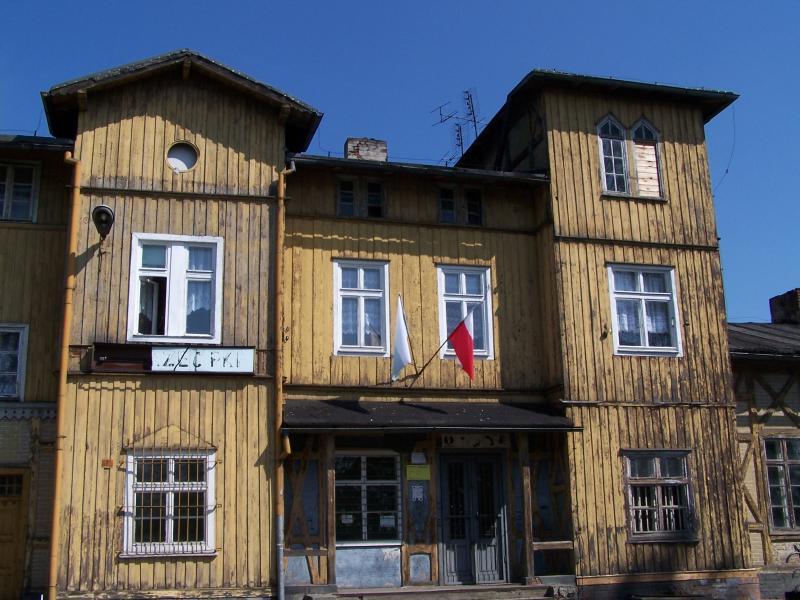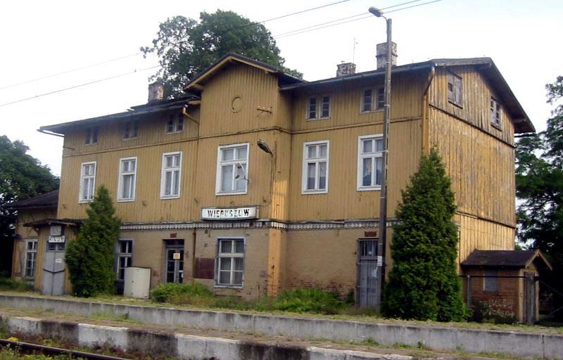 Zniszczony budynek stacji kolejowej w Wieruszowie. Nic dodać, nic ująć, popada w ruinę. Widok od strony drogi.