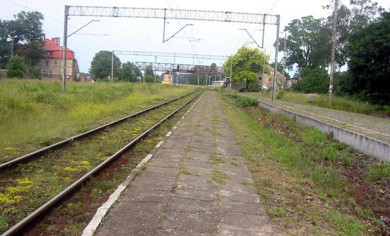 Stacja PKP Wieruszów. Jedyny czynny peron. Widok w kierunku Wielunia.