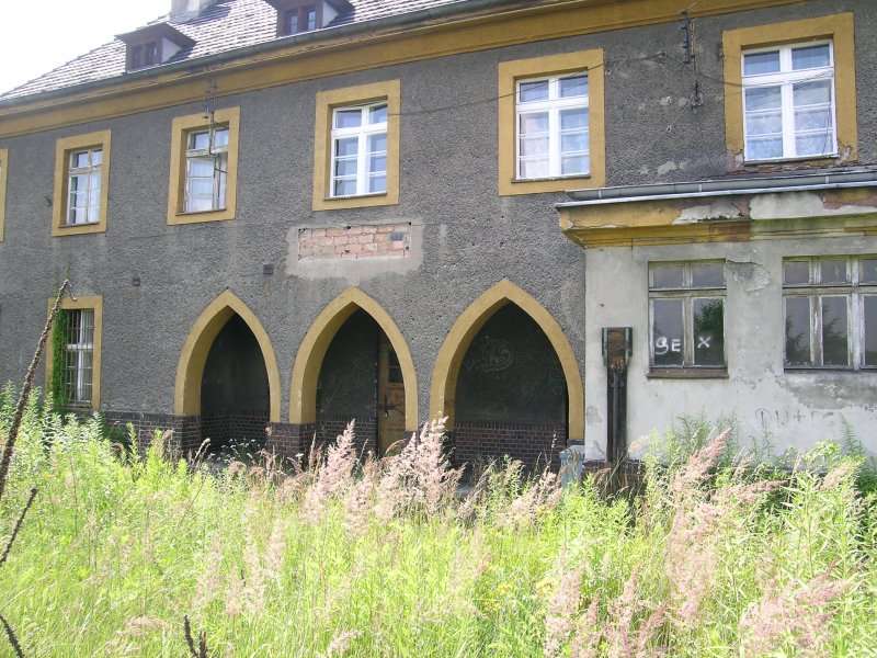 Budynek dworca. Obecnie dworzec jest opuszczony i notorycznie podpalany.
