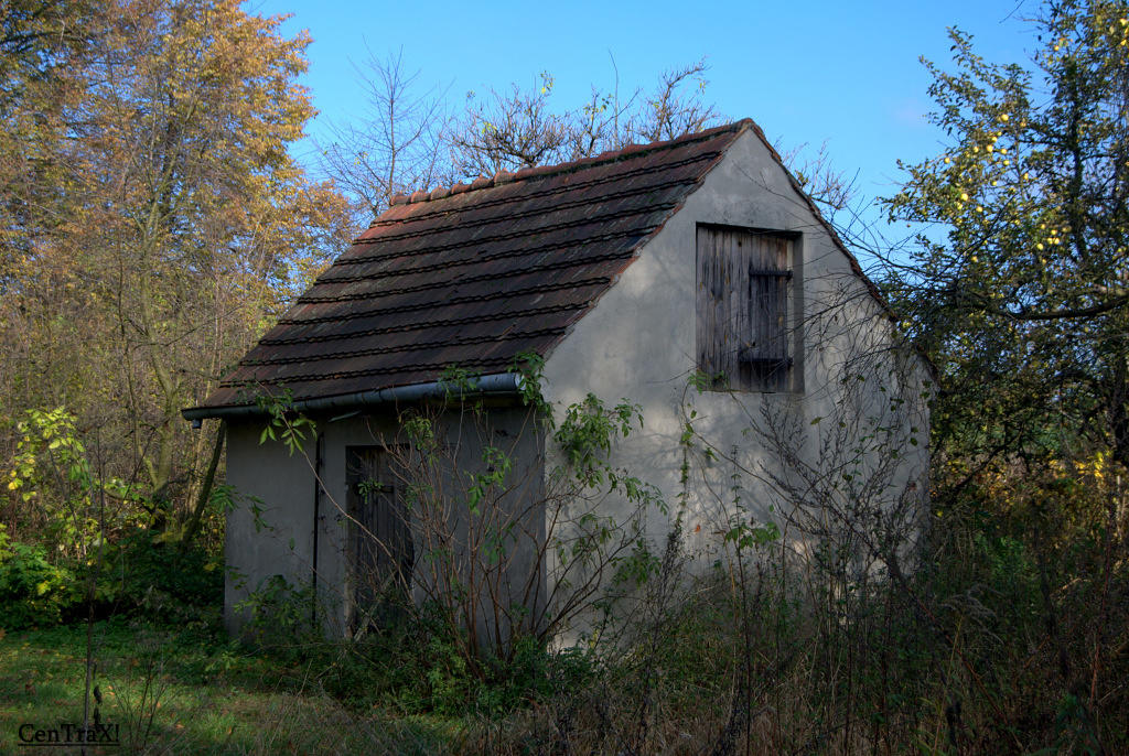 Budynek gospodarczy, jeden z wielu takich samych na tej linii.