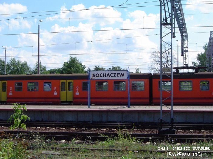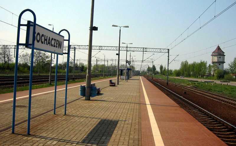 Stacja PKP w Sochaczewie z okna pociągu osobowego relacji Łowicz Gł.-W-wa Wschodnia.