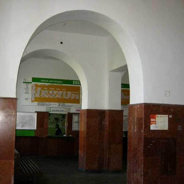 PKP Sochaczew. Wnętrze budynku dworcowego. Kasy biletowe Kolei Mazowieckich.