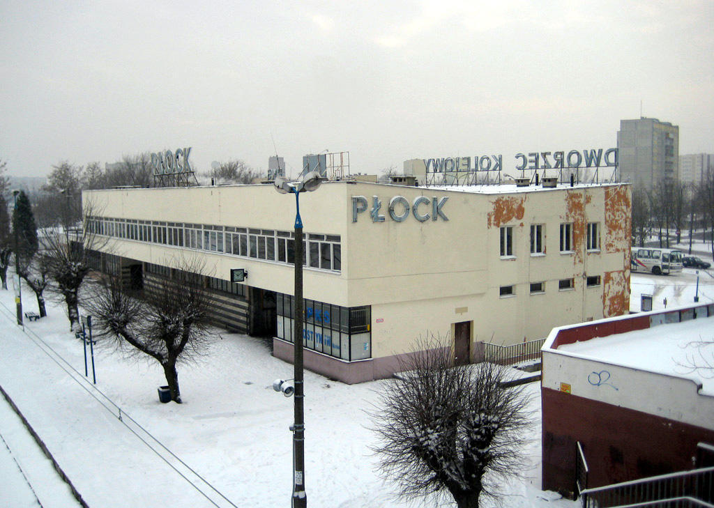 Dziś istnieje jedynie połączenie PŁOCK-KUTNO -[EN 57] (linia PŁOCK-SIERPC, dalej BRODNICA jest zamknięta). Dwa połączenia (przez KUTNO) biegną do WARSZAWY oraz ŁODZI KALISKIEJ. Linia jest eksploatowana głównie przez pociągi towarowe (w tym ORLEN). W latach 1995-1997 (przedziału czasowego niestety nie pamiętam,(chyba należałoby to sprawdzić w starych rozkładach jazdy) przez PŁOCK poprowadzono połączenie ŁÓDŹ KALISKA-GDYNIA. Być może było to spowodowane remontem jakiegoś innego odcinka kolejowego lub sprawdzianem zapotrzebowania na takie połączenie w PŁOCKU. Do stacji dojeżdżał w godzinach wieczornych zestaw z EU07, zaś do SIERPCA i dalej zamieniano na spalinową. Będę wdzięczny za informację, kiedy to miało miejsce (nie posiadam dostępu do starych rozkładów jazdy). Niestety chodzą plotki, iż w Płocku może zupełnie zostać zlikwidowany ruch pociągów pasażerskich. (info: Mariusz, 2005-04-17) Zmiana nazwy miasta prawie na pewno skutkowała tez zmiana nazwy stacji. Nie mam potwierdzonej tej informacji. Była tez używana nazwa Plotzk i Plock. (info: Krzysztof Marciniak, 2006-07-08) Płocki dworzec został prawdopodobnie wysadzony przez Niemców w 01.1945, potem dłuższy czas stała zamiast niego "szopa" (wg opisu świadków), teraz stoi konstrukcja "lata 70". Kasę prowadzi ajent i budynek bardziej służy PKSowi niż PKP, a szkoda. (info: Krzysztof Marciniak, 2006-07-08) Pociąg relacji Łódź Kaliska-Gdynia Gł. Os. przez Płock, kursowanie ostatni raz w rozkładzie ważnym do 01.06.1996, odjazd Łódź 23:25, Kutno 0:31, Płock odj.2:04 (zmiana lokomotywy?), Sierpc 2:35, Brodnica 3:37, Iława 4:44, Malbork 5:43, Gdynia Gł.7:04. W drugą stronę: Gdynia odj. 22:40, Malbork 0:03, Iława 1:04, Brodnia 2:22, Sierpc 3:34, Płock odj.4:20, Kutno 5:39, Łódź 7:12. Kursował codziennie. (info: Krzysztof Marciniak, 2007-08-12) g. rozkładu ważnego do 13.12.2008 z PŁOCKA odjeżdżają pociągi: POSP do WA-WY WSCH./EN57/OSOB do KUTNA oraz SIERPCA/VT 627/OPERATOREM POŁĄCZEŃ JEST SP. KOLEJE MAZOWIECKIE - KM Pociągi w PŁOCKU mają do dyspozycji tylko dwa tory: 1 i 4 wszystkie przy peronie nr 2. (info: ADAM PIOTROWSKI, 2007-12-22) Kasa w PŁOCKU jest JEDYNĄ CZYNNĄ kasą pomiędzy KUTNEM a BRODNICA. (info: ADAM PIOTROWSKI, 2007-12-22) Planowana przebudowa hali dworcowej. Ma pojawić się też zadaszenie peronów. (info: ADAM PIORTOWSKI, 2008-02-04) Wg. rozkładu ważnego do dn. 11.12.2010 z Płocka odjeżdżają pociągi: PRZYSPIESZONY "Mazovia" do Warszawy Wsch. |EU07/EP07+piętrusy Bombardiera| oraz do Sierpca i Kutna |VT627/VT628|; (info: ADAM PIOTROWSKI, 13-01-2010) W pewnej odległości od stacji Płock w kierunku Płock Trzepowo znajdowały się bocznice do wielu zakładów w dzielnicy przemysłowej. Miały własną nastawnię, "lokomotywownie" (na jedną lokomotywę manewrową) oraz sygnalizatory kształtowe (głównie tarcze manewrowe). Obecnie wszystko to niszczeje. W Płocku istniała już wcześniej (niż linia Kutno-Brodnica) kolejka wąskotorowa. Znalazłem nawet w sieci wzmiankę o niej: "[…]W roku 1911 […] zaczęto myśleć o budowie kolejki wąskotorowej." "[…]W roku 1921 uruchomiono tartak, rok później kolejkę wąskotorową[…]" (całość na http://www.plock24.pl/fusion/readarticle.php?article_id=75). Prawdopodobnie służyła tylko dla potrzeb cukrowni. (info: Krzysztof Marciniak, 2006-07-08) Ostatnimi czasy wycięto barierki odgradzające tory i poprawiono nagłośnienie. (info: Krzysztof Marciniak, 2007-12-27) Nastawnia czynna. (info: ADAM PIORTOWSKI, 2008-01-01) W obrębie stacji istnieje kilka bocznic, które są w użyciu. Prowadzą one m. in. do FABRYKI MASZYN ŻNIWNYCH oraz skupu złomu. Używana także bocznica rozładunkowa, która jest własnością jakiejś firmy budowlanej. Kiedyś była rampa załadunkowa. Być może jeszcze jest. (info: ADAM PIORTOWSKI, 2008-01-01) Bocznice na Kostrogaju to już historia. Można tam znaleźć jeszcze kilka podkładów (drewniane jak i betonowe), 2 betonowe kozły oporowe (przy wiadukcie i mniej więcej w połowie bocznic w drzewach), szyny są tylko w przejeździe na ulicy Kostrogaj. Doliczyłem się 4 śladów po torach. Wjazd na te bocznice był wprost ze stacji za pośrednictwem osobnego toru. Tor ten kończy się zaraz za przejazdem przez ulice Bielsko. Tory również biegły przez ulice Gwardii Ludowej w stronę starostwa powiatowego. Do niedawna był ślad po torze przy skrzyżowaniu ulicy Gwardii Ludowej i Bielskiej. Niedawno przebudowano trochę to skrzyżowanie właśnie w miejscu dawnego torowiska i nie ma już śladu. Układ torowiska jest widoczny na mapach na www.geoportal.gov.pl. Po drugiej stronie stacji była bocznica do jednostki wojskowej. Biegła wzdłuż ulicy Lehmana, przecinała aleje Piłsudskiego pod kontem (do dziś jest ślad gdzie to było) i wchodziła na teren jednostki. Odnośnie kolejki wąskotorowej to były dwie. Jedna cukrowni Borowiczki która łączyła się linią normalnotorową o okolicy przejazdu na ulicy Bielskiej i druga łącząca stacje Radziwie z papiernio w Soczewce. Obie kolejki prawdopodobnie o prześwicie 600mm. (info: andrzej2110, 22-03-2009) Opis budynków: W budynku znajdują się 2 kasy PKS i 3 kasy PKP, ale tylko jedna czynna. (info: ADAM PIOTROWSKI, 2007-12-22) Kasy PKS powstały z wydzielenia fragmentu hali poczekalni. Oprócz kas PKS jest jeszcze informacja. Kasa PKP prowadzona przez ajenta nadal, kasę bagażową oraz informacje zamknięto dawno (informacja przetrwała do roku około 2000). Resztę budynku zajmuje sklep z używaną odzieżą oraz dyspozytor PKS. Od drugiej strony jest jeszcze jakaś agencja ubezpieczeniowa. Po obu stronach dworca budynki PKP. Kiedyś w budynku mieściła się chyba m.in.przychodnia zakładowa, kasa towarowa. (info: Krzysztof Marciniak, 2007-12-27) Kasa czynna od 5:30. Obok stacji znajduje się żółty budynek PKP, do którego prowadzi bocznica. Stoją często na niej jakiś