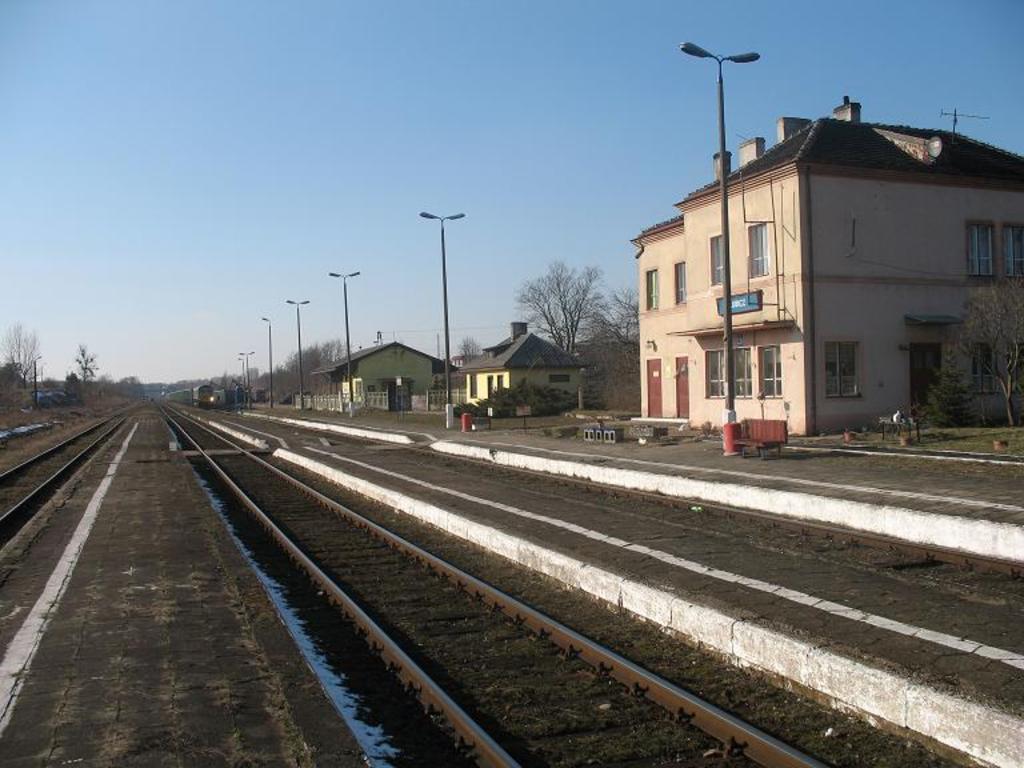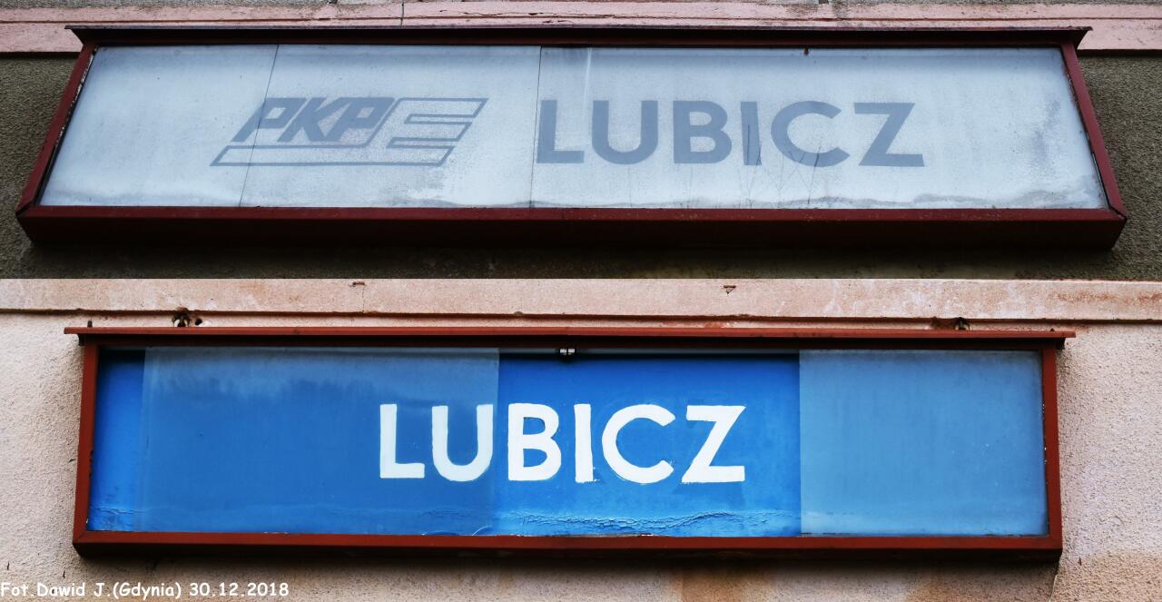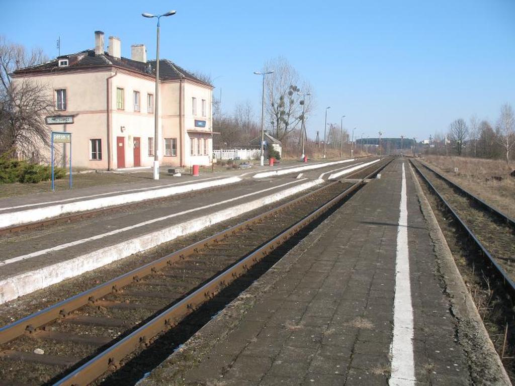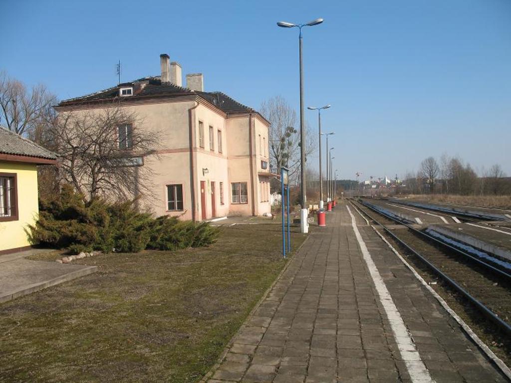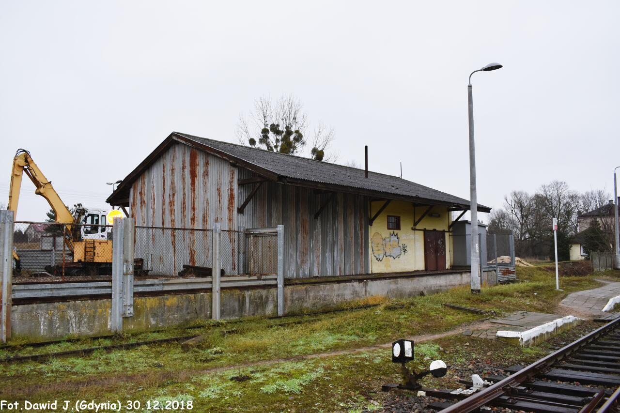 Budynek dworcowy widoczny od strony torów. W budynku znajdowała się nastawnia "Lb". Tablica z nazwą stacji. Zdjęcie ma już charakter historyczny bo podczas drugiej wizyty w dniu 30.12.2018 okna i wejścia w budynku były już dokładnie dobite deskami. Nastawnie "Lb" w budynku zastąpiła zautomatyzowana nastawnia kontenerowa "Lb". W lewo Toruń Wschodni, w prawo Lipno/Sierpc/Nasielsk.