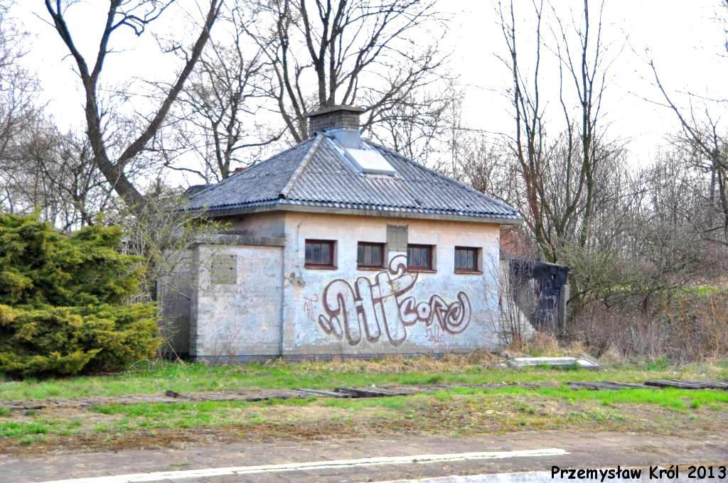 Budynek lampiarni/małego magazynu widoczny od strony torów. W lewo Toruń Wschodni, w prawo Lipno/Sierpc/Nasielsk.
