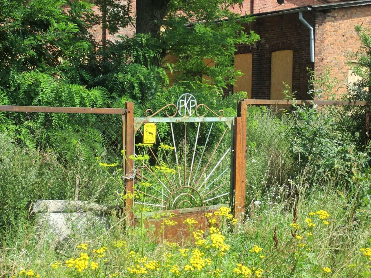 Na furtce do lokomotywowni wciąż widnieje znak dawnego operatora lokomotywowni wąskotorowej w Resku.