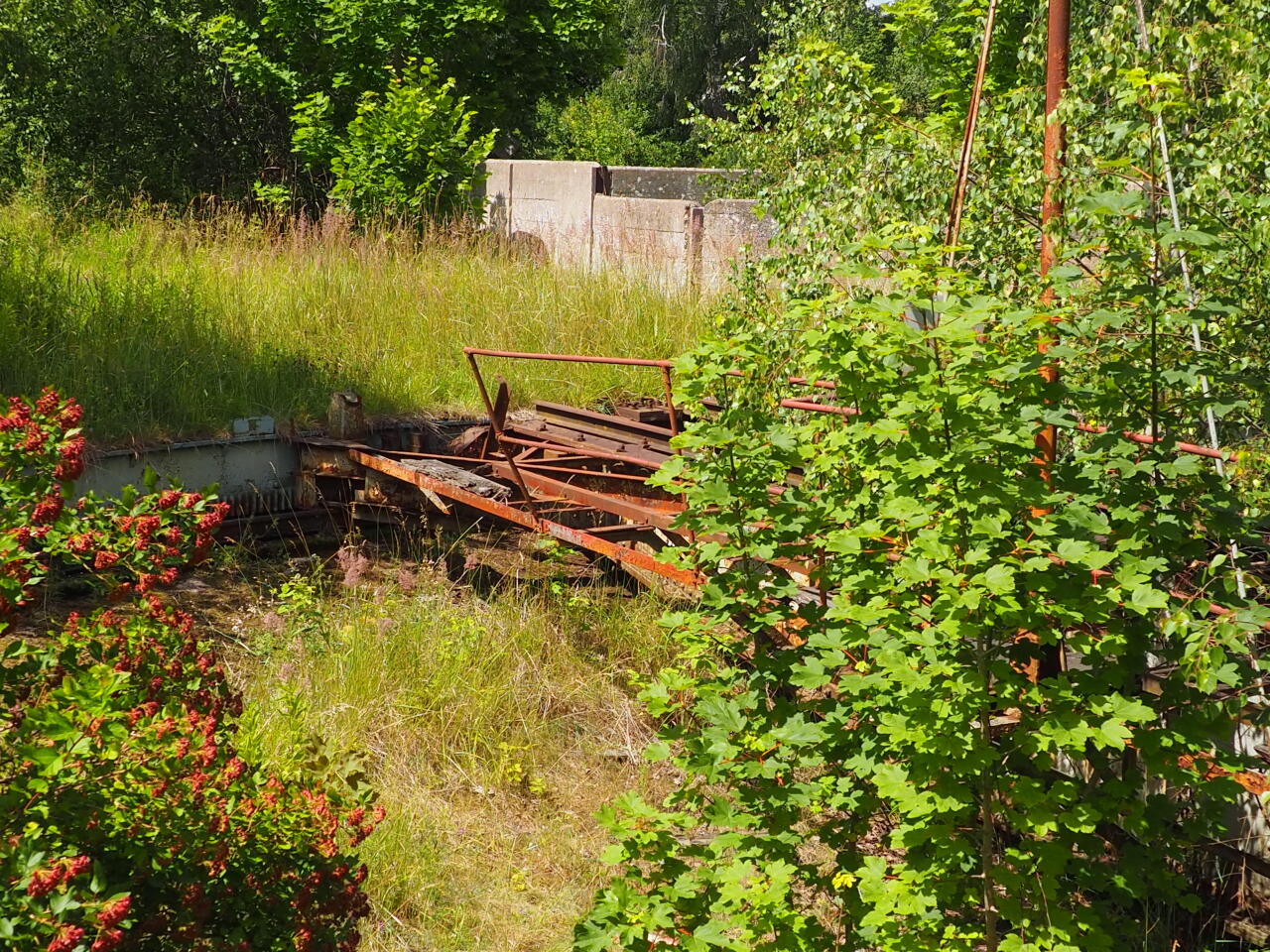 Fragment obrotnicy, niestety obecnie bardzo trudno, a wręcz niemożliwym jest wykonanie zdjęcia całości obrotnicy. To wszystko przez porastające ją drzewa i wysoką trawę.