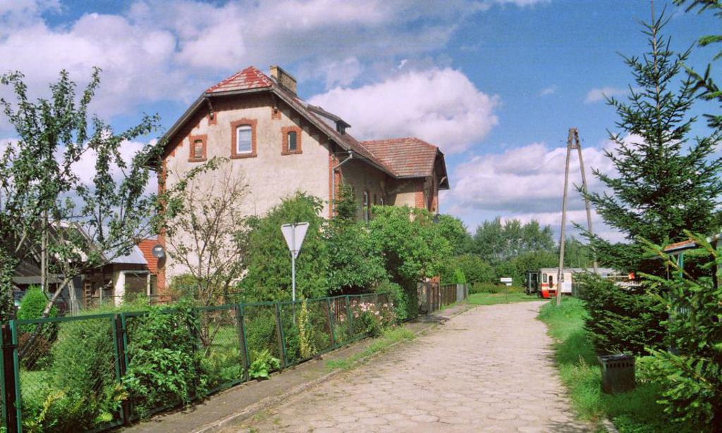 Budynek kolejowy od strony torów, od strony Koszalina (w prawo).
