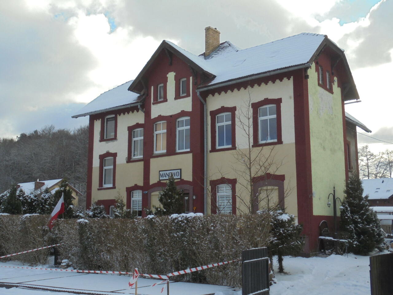Budynek stacyjny. Stacja kolejki wąskotorowej w Manowie.