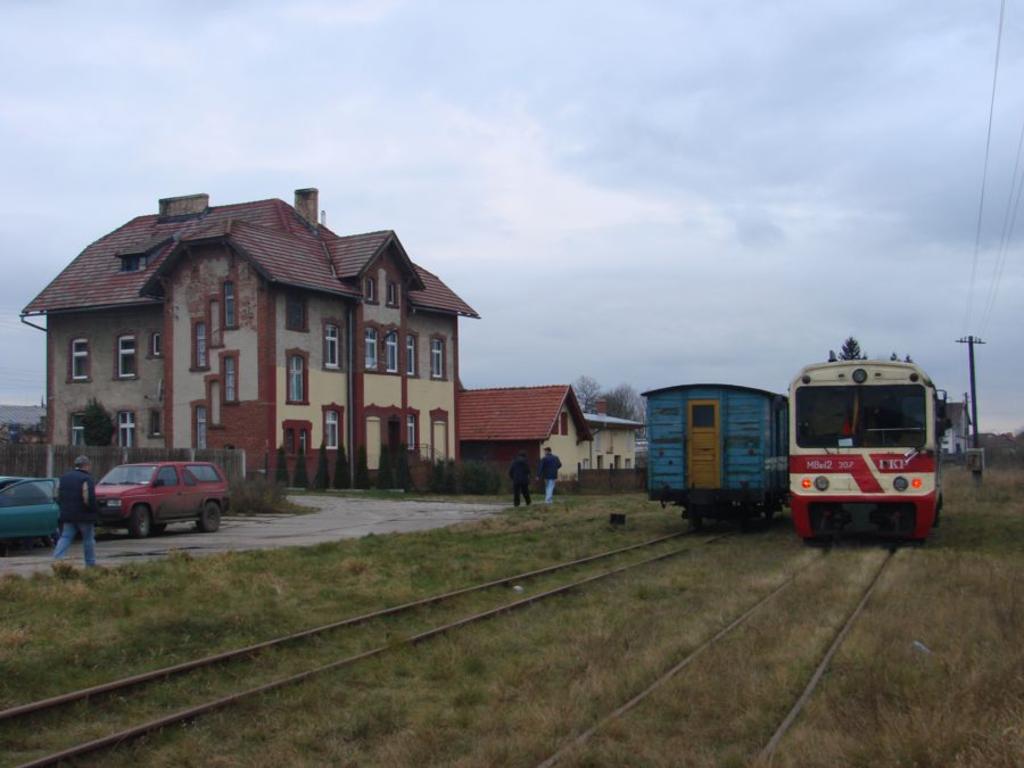 Opis ogólny: Perony ziemne zrównane z ziemią (info: Artur Wróblewski, 09-01-2009) Przejazd kolejowy przez drogę krajową nr 11 jest drożny, możliwa jest jazda aż do lasu pod Manowem, gdzie kończy się tor. Perony obecnie nieczytelne, za czasów PKP istniały ziemne z krawężnikami. (info: marcin, 07-01-2010) Opis infrastruktury: Na stacji znajdują się 4 tory: główny, 2 mijanki oraz bocznica. Krótsza mijanka jest udrożniona i w pełni sprawna, używana do oblotu składu przez MBxd2-307. Druga mijanka, dłuższa, przebiega wzdłuż betonowego placu ładowni, jest kompletna, ale zarośnięta. Bocznica również kompletna i zarośnięta. (info: marcin, 07-01-2010) |
