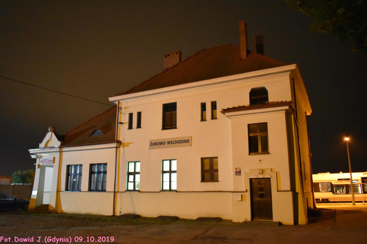 Opis ogólny: Jeden z dodatkowych torów został rozebrany. (info: Wojciech witulski) Opis infrastruktury: Przez ostatni rok stacja Żukowo Wsch. trochę się zmieniła. W kierunku Kościerzyny zostały ustawione semafory świetlne na miejsce starych kształtowych. Semafor wjazdowy od strony Kościerzyny też został zmieniony na gustownego pięciokomorowca tarcza ostrzegawcza tego semafora też jest świetlna. Nastawnia mieszcząca się w budynku stacyjnym została po prostu ROZEBRANA. Zostało gołe pomieszczenie. Naprężacze też "wyparowały". Uchowała się natomiast nastawnia od strony Gdyni. Możliwe że z niej odbywa się sterowanie tymi nowymi semaforami i automatem zwrotnicowym, zamontowanym w miejsce mechanicznego, który był sterowany z rozebranej nastawni. Semafor wyjazdowy z toru właściwego w stronę Kościerzyny ma 4 komory, a drugi przy torze lewym ma 3 komory. Nie znam dokładnej daty tych zmian, ale przypuszczam że to odbyło się po 10 maja 2007. Wtedy byłem w Żukowie na tej stacji po raz ostatni. (info: Karol Dampc, 2008-01-21) Opis budynków: Poczekalnia - zdjęcie w galerii chyba najlepiej określa jej aktualny stan. Jednak pomimo tego nadal jest czynna. (info: Bartek Jaszczur, 2007-02-18). Poczekalnia - stan na 2025-01-29. Pomieszczenie w którym funkcjonowała kasa biletowa zostało zamknięte. Jedyna część poczekalni, która pozostaje dla podróżnych to mikroskopijnych wielkości klitka (zdj. Dawida Jastrzębskiego, dn. 2017-11-02), jednak od tego czasu ubyła ławka. Został tylko rozkład jazdy. O dziwo na stacji wciąż działa głosowe zapowiadanie przyjeżdzających pociągów. (stan na 2025-01-29) |