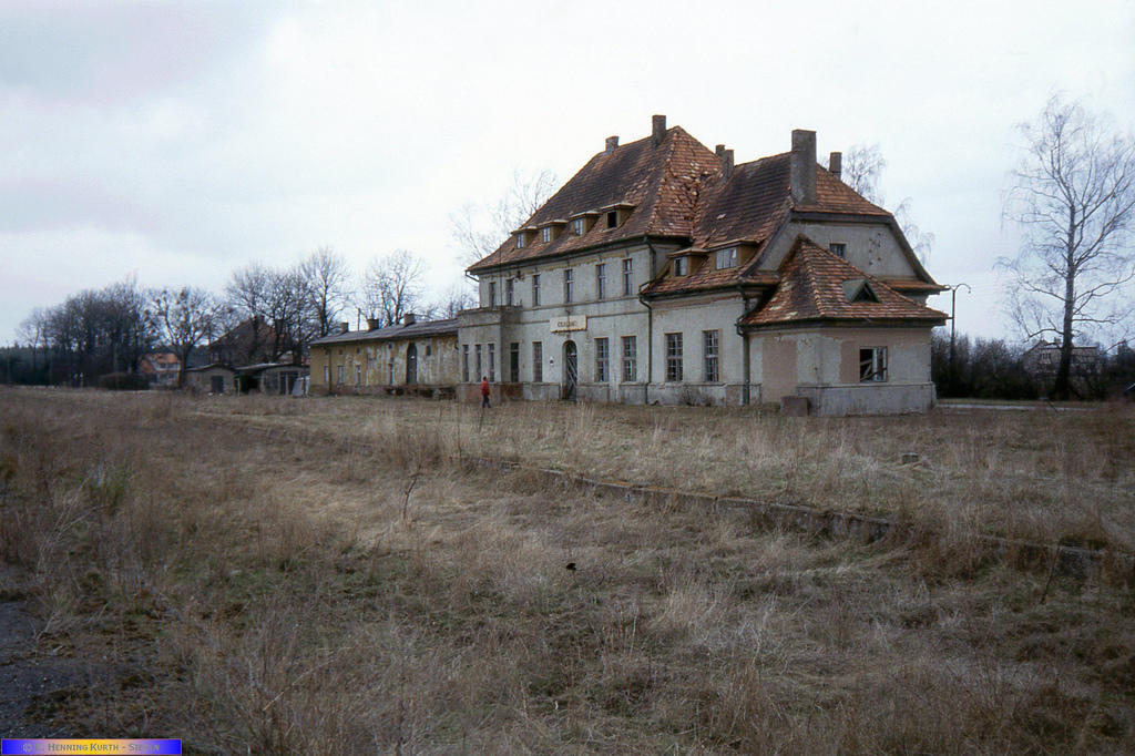 Potężny budynek stacyjny w dużej mierze zdewastowany. Budynek przechodził remont. Wymieniono dach, na ścianach zachowane jeszcze były napisy sprzed 1945. (info: Jakub Zachor, 2007-10-03) Nastawnia od strony Giżycka rozebrana. |