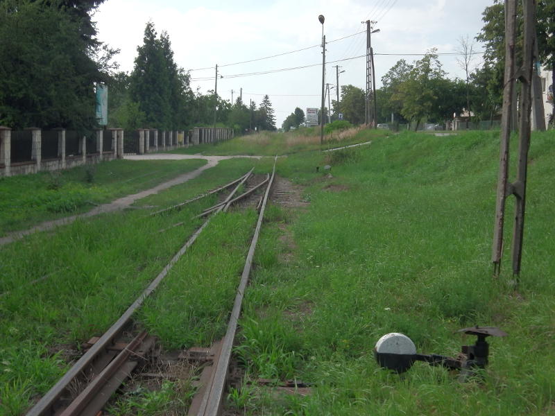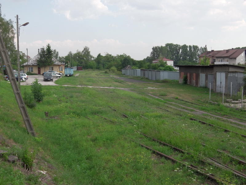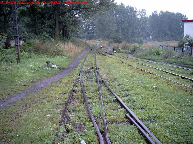 Głowica wyjazdowa w kierunku Umianowic. Z lewej widoczny budynek dawnej lokomotywowni Pińczowskich Kolei Powiatowych.