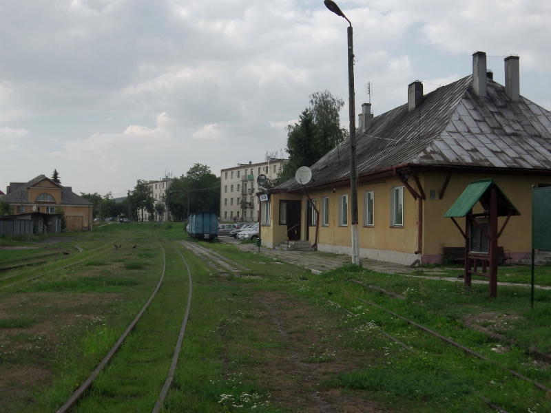 Budynek dworca od strony miasta; obecnie zaadaptowany na cele mieszkalne.