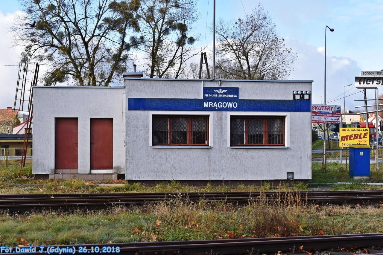 Opis ogólny: Peron 2 rozebrany, prawdopodobnie istniał tylko wtedy gdy Mrągowo było stacją węzłową. Ostatnio przejeżdżałem w 1993. (info: Marek Zienkowicz, 2005-05-01) W budynku PKP jest obecnie bar "Pszczółka" oraz kasa i pomieszczenie Dyżurnego ruchu PKS Mrągowo. Bilety na pociąg kupuje się u konduktora, gdyż kasa jest zlikwidowana. (info: Legion, 14-04-2010) Jakikolwiek ruch pociągów jadących przez Mrągowo zarówno z Olsztyna, jak i z Ełku został wstrzymany. Pociągi z Olsztyna i z Ełku do Mrągowa będą kursowały tylko w okresie letniej przerwy wakacyjnej. (info: Legion, 24-01-2011). |