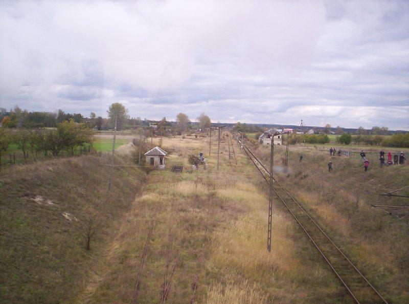 Stacja Stawiany Pińczowskie - widok na południe z wiaduktu kolei wąskotorowej.