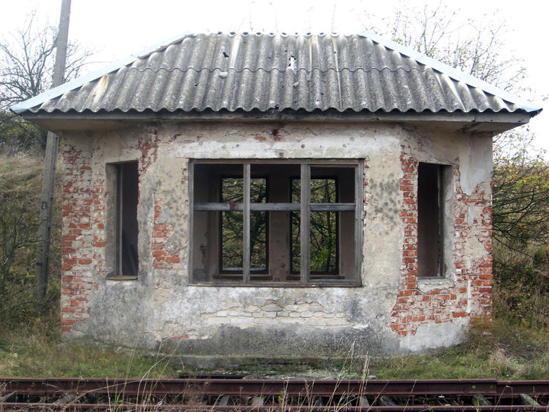 Zamknięta nastawnia, obecnie całkowicie zdewastowana.