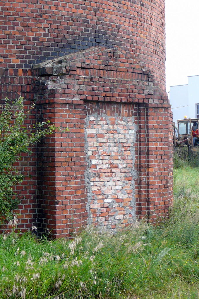 Nidzica. Dolna część wieży wodnej. Widok w kierunku wschodnim; w lewo perony, w prawo Działdowo.