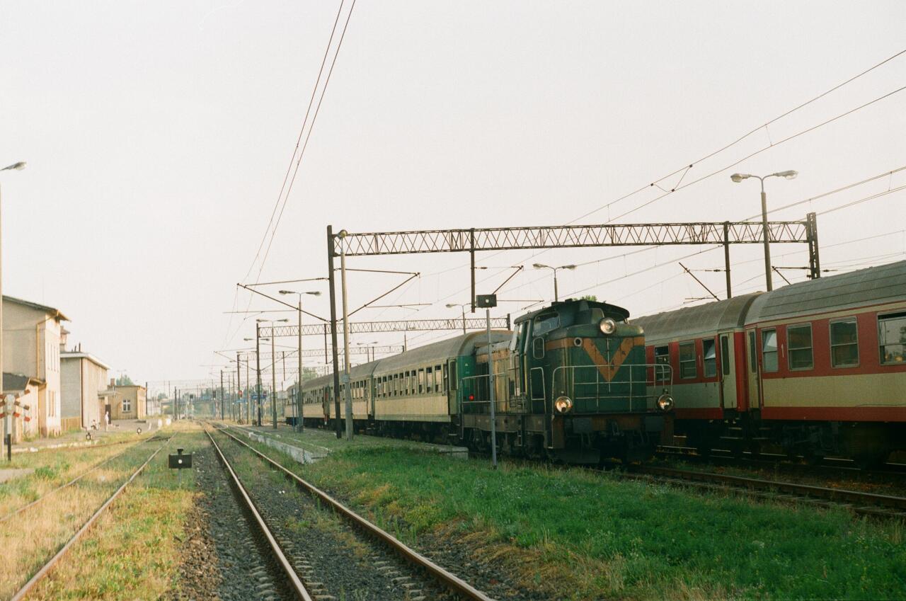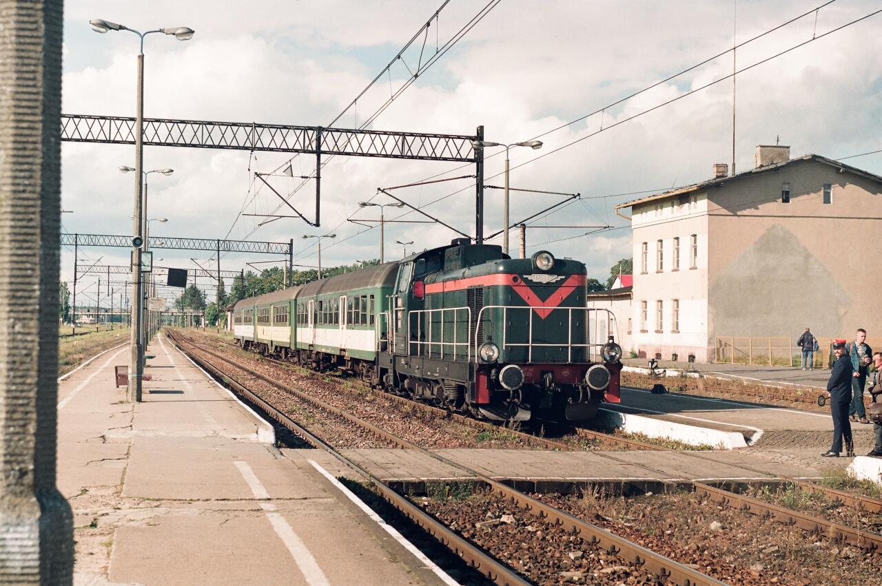 Pociąg ze Olsztyna przez Szczytno skończył bieg przy peronie 1. Z prawej kolejowy budynek mieszkalny. Widok w kierunku północnym: Wielbark/Szczytno, Olsztynek/Olsztyn.