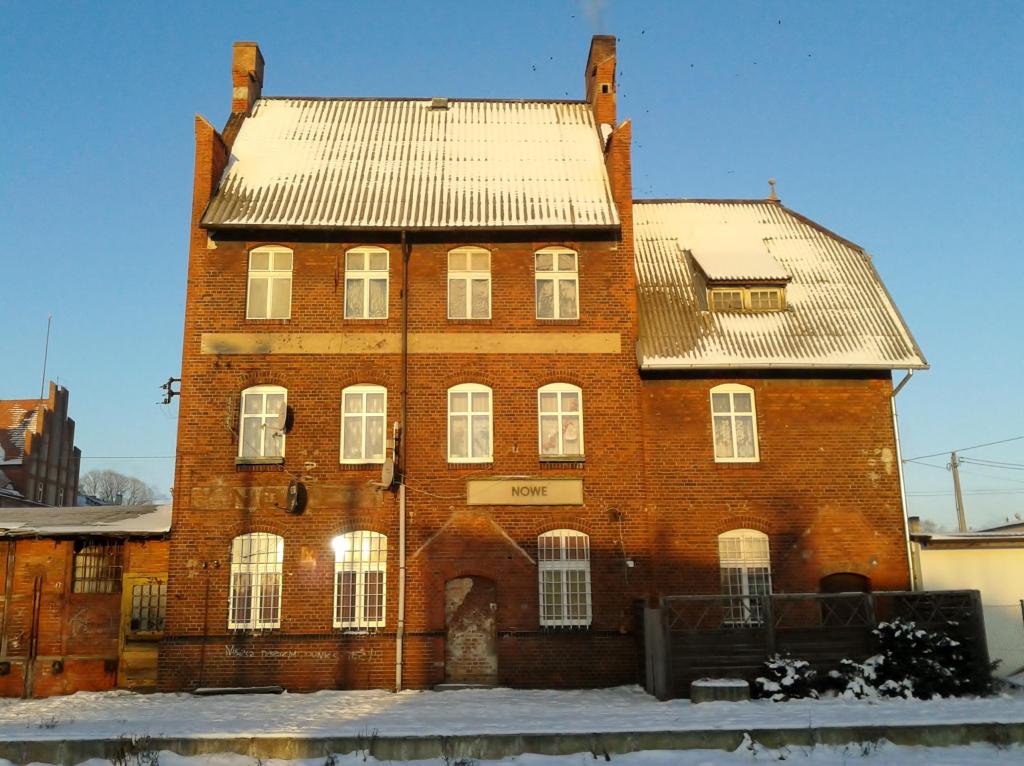 Opis ogólny: Wszystkie tory na stacji rozebrano w marcu 2009. (info: Mirosław Nowaczek, 15-03-2009) Opis infrastruktury: Obecny układ torów różni się nieco od dawniejszego. Na zdjęciach stacji widoczna jest przybudówka - magazyn. Pod niego prowadził tor. Oczywiście był też dojazd do nieistniejącej lokomotywowni. (info: Grzegorz ze Smętowa, 2007-09-17) Opis budynków: Lokomotywownia w Nowem: znajdowała się tam jednostanowiskowa lokomotywownia, mniej więcej w miejscu obecnego przejścia przez tory koło Osiedla 700 lecia i wjazdu na bocznicę fabryki mebli. Obok niej stał żuraw do nawadniania i składzik węgla. Dopóki na tej linii kursował parowóz była ona w użyciu. Po wycofaniu parowozu szopa zaczęła popadać w ruinę, by zostać rozebraną w połowie lat 80-tych. Obecnie w jej miejscu znajduje się zakrzaczony zwał ziemi, po którym można "zidentyfikować" to miejsce. (info: Grzegorz ze Smętowa, 2007-09-17) |