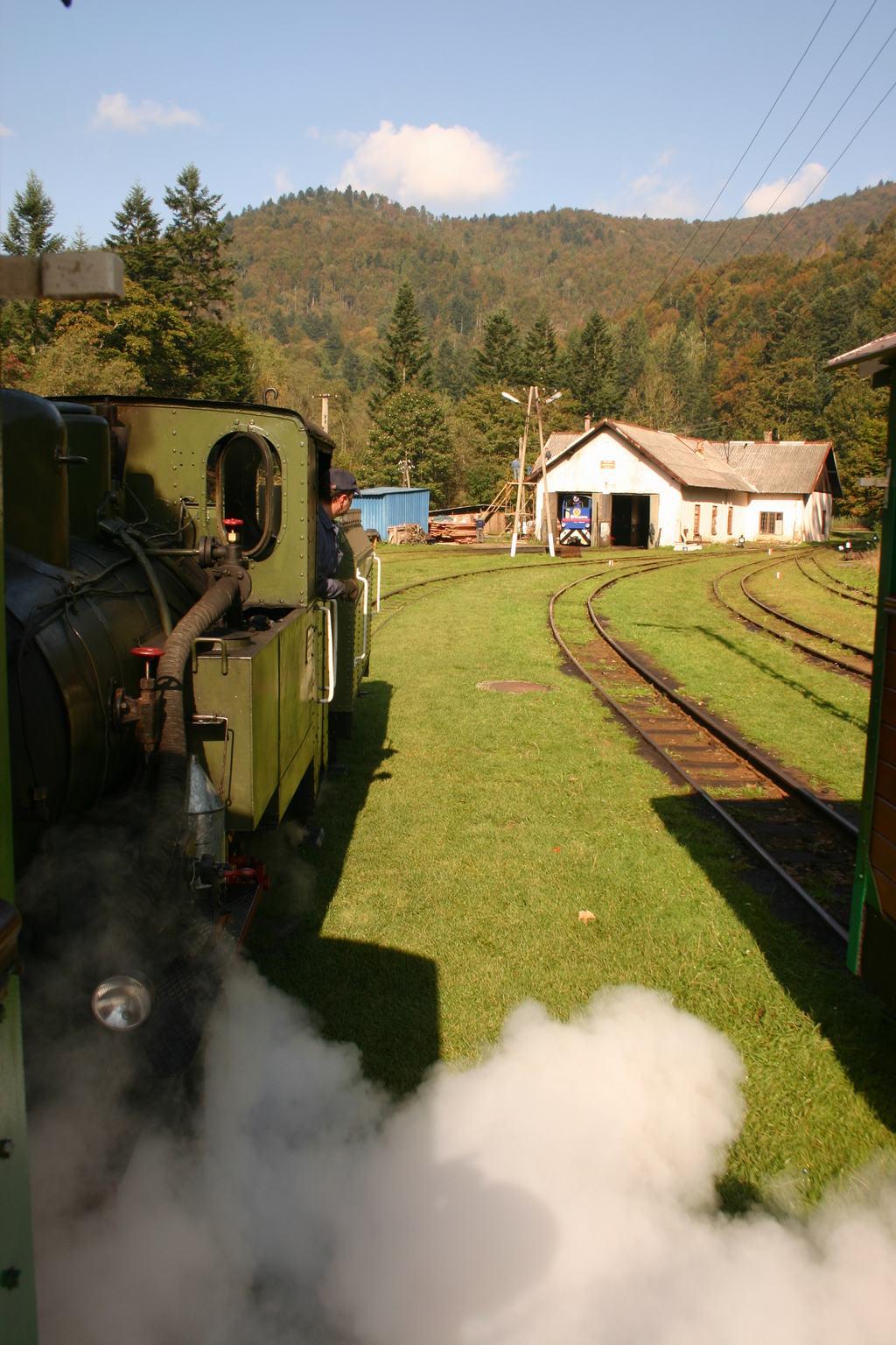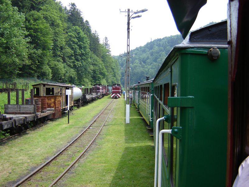 Utwardzony plac, dwa metry wyżej niż torowisko. Kiedyś miejsce na zrzut drewna, dziś przeznaczone na postój wagoników do przewozu węgla. Może się kiedyś jeszcze przydadzą do wyeksponowania, jak to się jeździło z drewnem po Bieszczadach.