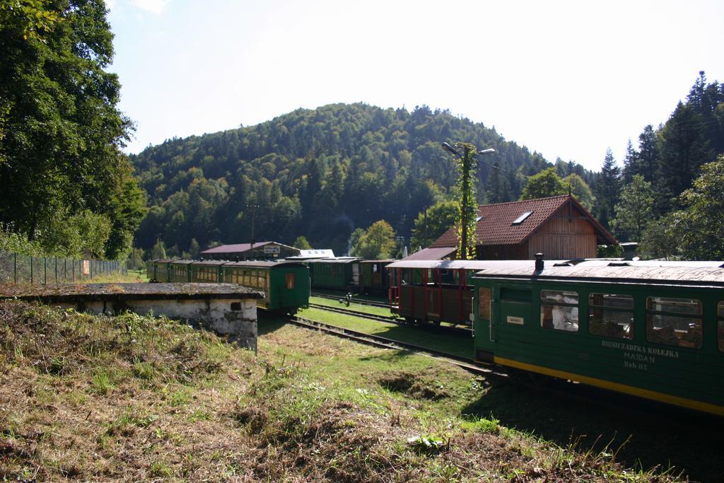 Wagony Bieszczadzkiej Kolejki na stacji Majdan.
