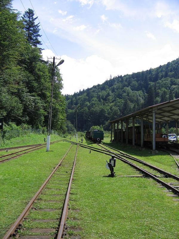 Widok na stację, kiedy turyści czekają na podstawienie pociągu,