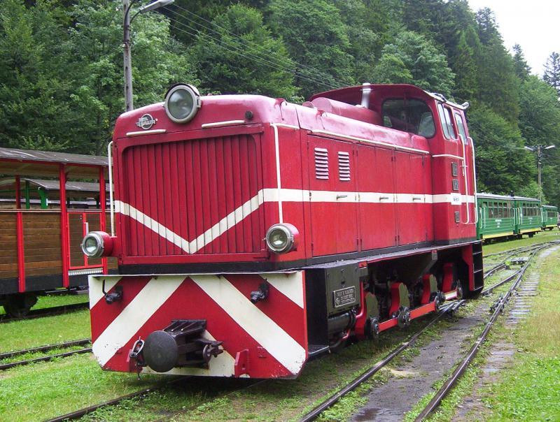 Lokomotywa spalinowa LP-Lyd2-05 ciągnąca wagony turystyczne w kierunku Cisnej.