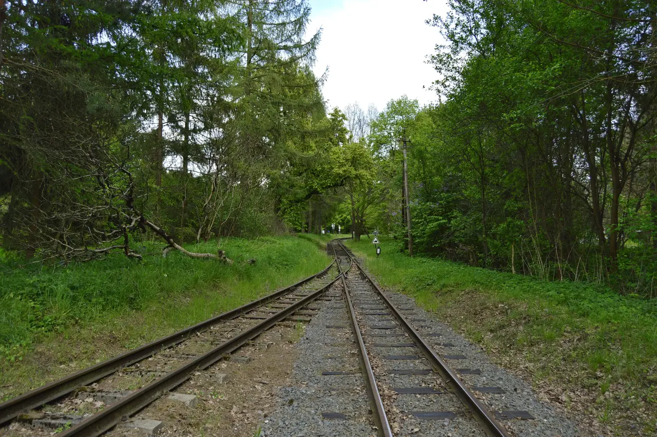 | Kiedyś odgałęział się tor do tartaku Paproć. |