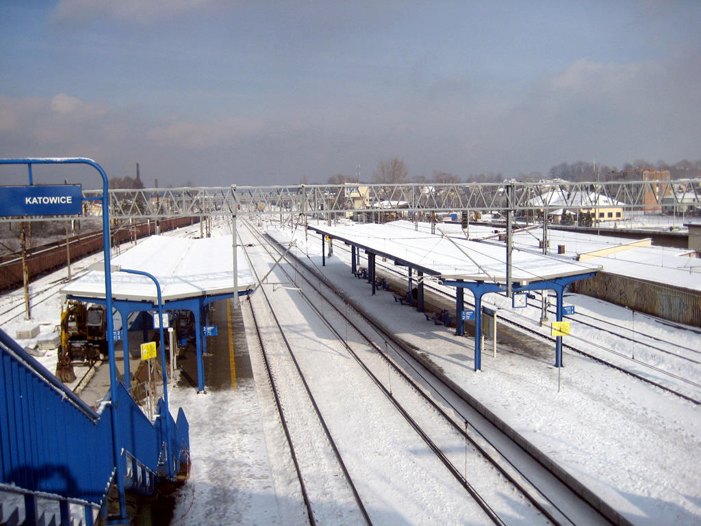 Stacja Łazy, widok w kierunku Katowic na perony.