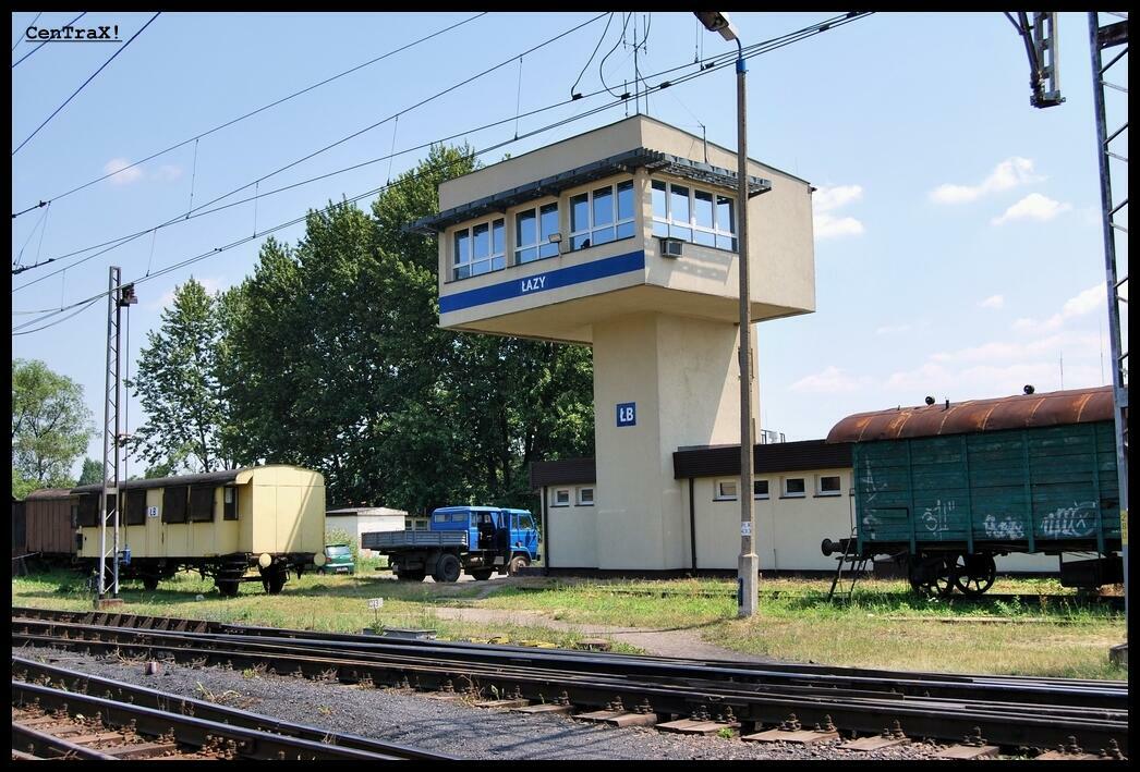 Nastawnia ŁB widziana od strony peronów. Po lewej wagon nastawnia;).