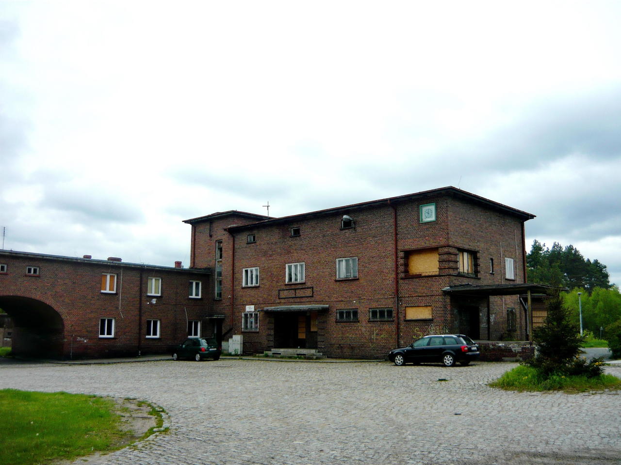 Budynek dworca i mieszkalny od strony podjazdu z DW 174.