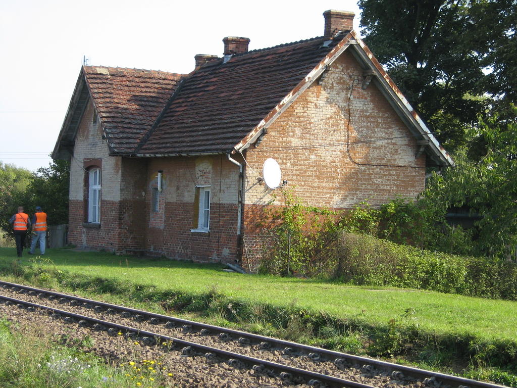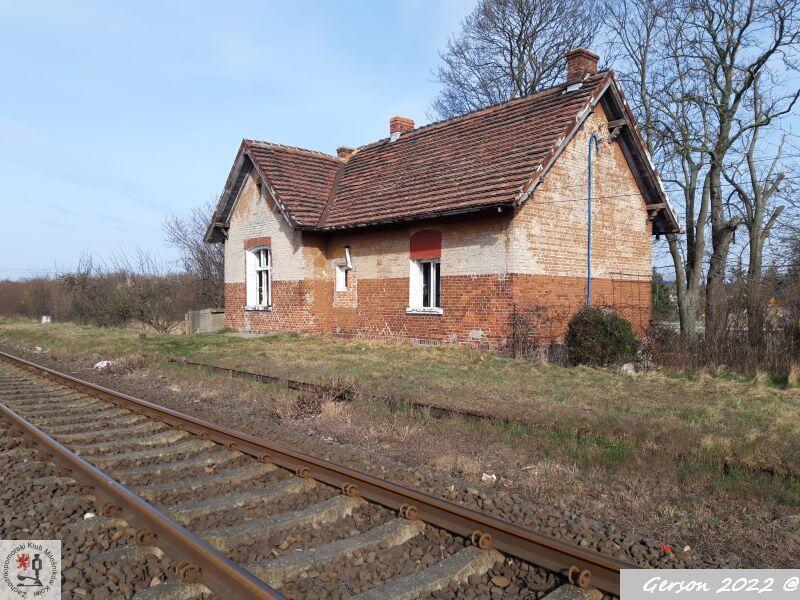 W lewo Szczecin Gumieńce, w prawo Kołbaskowo/Granica Państwa. Budynek w stanie miernym, wystawiony na sprzedaż przez PKP. Niestety, jest zdewastowany.