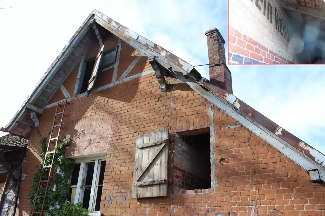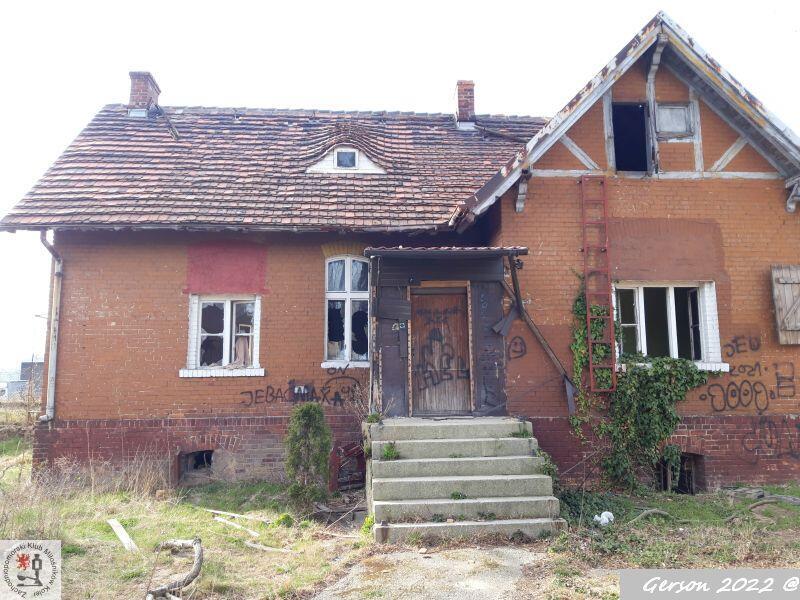 Pozostałości budynku mieszkalnego zlokalizowanego w sąsiedztwie dawnego peronu. W lewo Szczecin Gumieńce, w prawo Kołbaskowo.