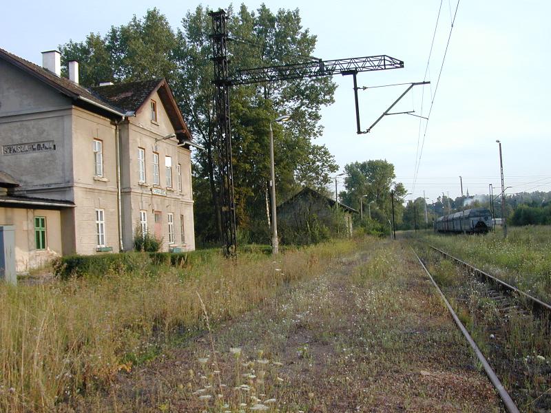 Opis ogólny: Stacja osobowa zlikwidowana wraz z likwidacją KWK Siersza (info: Igor Bartosik) Stacja jest - wbrew pozorom - węzłem. Dochodzi tu tor z Trzebini, dalej można dojechać do Elektrowni Siersza lub torami piaskowymi w kierunku Jaworzna Szczakowej. Z bocznic istnieje jedna - używana do ZSO "Górka", do końca lat 90-tych była czynna bocznica do KWK "Siersza". (info: quentin, 2007-11-24) Szczegółowy kilometraż: 4,742 pierwszy rozjazd Trzebini Sierszy 4,987 koniec sieci trakcyjnej 5,482 Trzebinia Siersza - oś stacji 6.212 Granica Gruntu PKP (info od: Konrad Bigaj, 2008-01-28) Stacja powstała pod koniec XIX wieku, przy kopalni "Artur" w Sierszy, ale już terenie wsi Wodna, stąd nadano jej nazwę "Siersza-Wodna". W 1969 roku powstało miasto Trzebinia-Siersza (z połączenia miasta Trzebinia i miejscowości Siersza) i po tej dacie PKP zmieniło nazwę na "Trzebinia-Siersza-Wodna". 1.02.1977 r. zmieniono nazwę miasta Trzebinia-Siersza na Trzebinia, więc po tej dacie skrócono nazwę, zostawiając pierwsze dwa człony, czyli "Trzebinia-Siersza", obowiązująca do dziś. Chcę również nadmienić, że nazwę "Trzebinia-Siersza" nosiła inna stacja kolejowa: Trzebinia (między 1969 a 1977 rokiem), stąd symbole nastawni dysponujących w Trzebini mają oznaczenia TSA i TSB (modernizacja urządzeń srk rozpoczęła się przed 1977 rokiem) (info: scc, 03-07-2009) Po zamknięciu Kopalni Siersza w 2000r. stacja straciła na znaczeniu oraz bardzo opustoszała. Nie ma już połączeń osobowych. Zaś sama stacja wykorzystywana jest do przetaczania składów na bocznice do firmy Górma Cement oraz do Elektrowni Siersza. Bardzo często można spotkać składy z piaskiem z piaskowni z pobliskiego Bukowna. Stacja w Trzebini Sierszy jest zelektryfikowana, jednak dalsze odcinki w stronę Długoszyna/Bukowna oraz Elektrowni Siersza czy Górki Cement trakcji nigdy nie miały. (info: adamus, 26-10-2010) Opis infrastruktury: Stacja posiadała 3 głowice rozjazdowe - od strony Trzebini, przy wlocie z torów piaskowych/elektrowni i od strony kopalni. Głowica od strony kopalni zdewastowana i nieczynna, podobnie jak nastawnia ją obsługująca (jedna z 3 na stacji). (info: quentin, 2007-11-24) W 2009 roku na terenie stacji wymieniono całkowicie torowisko oraz podkłady. (info: adamus, 26-10-2010) Opis budynków: Budynek stacyjny ma na piętrze mieszkania, na dole jest ekspedycja towarowa. (info: quentin, 2007-11-24) Budynki stacyjne w dobrym stanie, zaadoptowane na cele mieszkalne. Słabo widoczne napisy na budynku Siersza Wodna (info: adamus, 26-10-2010) |