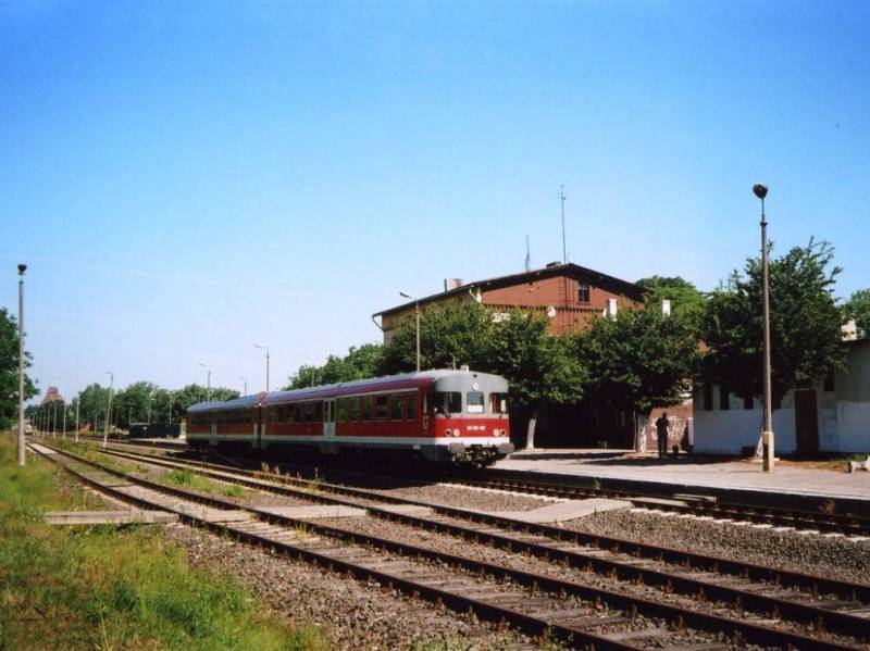 Darłowo przed południem - przyjazd szynobusu ze Sławna.