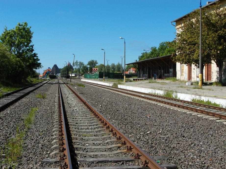 Widok z peronu w kierunku jednostki wojskowej w Darłówku.