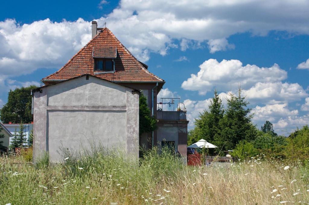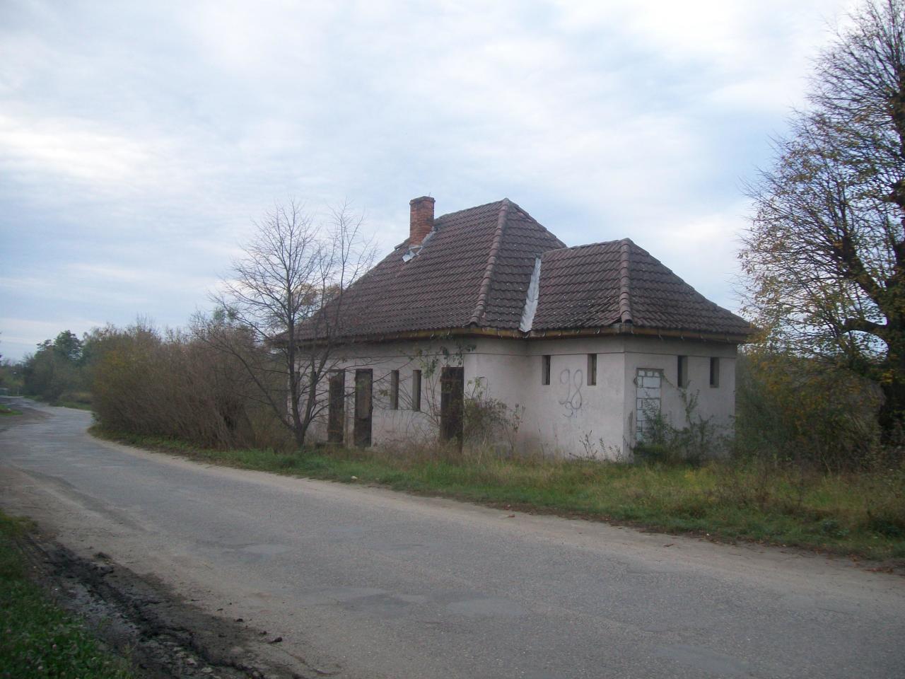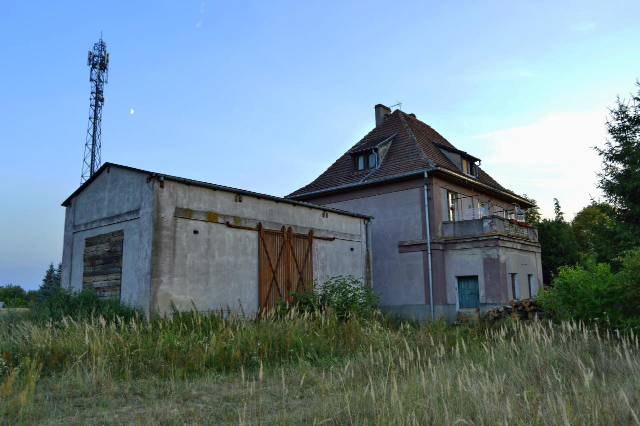 Dawny budynek dworcowy w Cigacicach, widok od strony dawnych peronów w kierunku południowo-zachodnim. Wjazd z Konotopu.