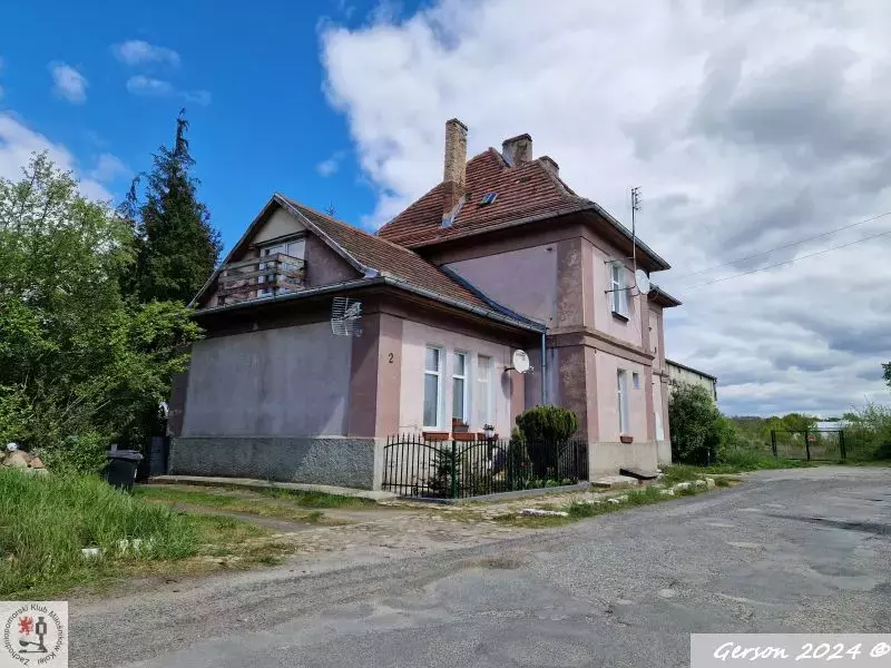 Dawny budynek dworcowy w Cigacicach - widok od strony ul. Kolejowej w kierunku północnym. W lewo Sulechów, w prawo Konotop.