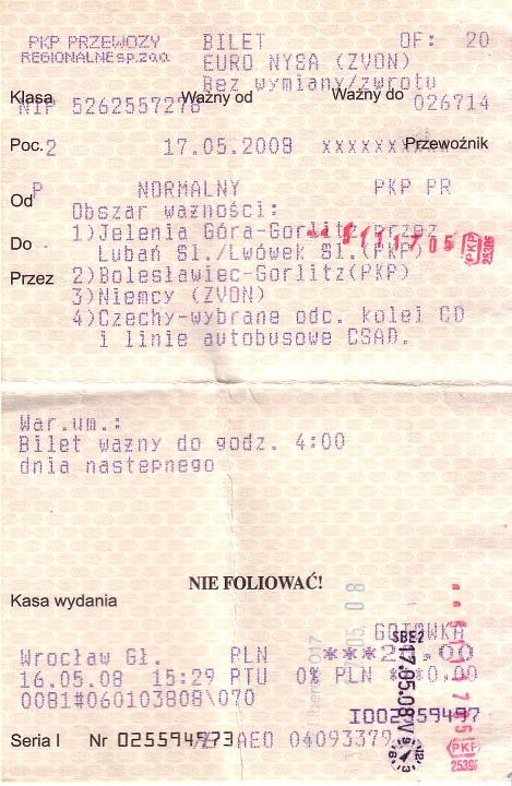 Bilety do punktu granicznego (Gr.) w Czechach są czymś normalnym, w Polsce różnie z tym bywało. Ale podobno teraz nie ma takich ograniczeń, jednak nie mam z tym osobistych doświadczeń. Sposób ma jedną zaletę dużą zaletę - jest niezależny od przejściówek, ale również i wadę. Jakkolwiek teoretycznie nic nie stoi na przeszkodzie wystawienia biletu w Polsce do punktu granicznego, to niektóre kasjerki (a może nawet, niestety, większość) nie chce ich sprzedawać i trzeba się wykłócać o swoje.