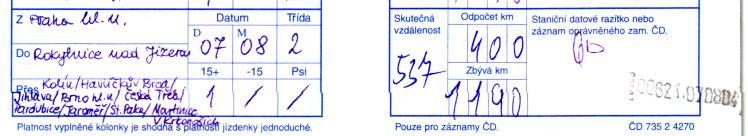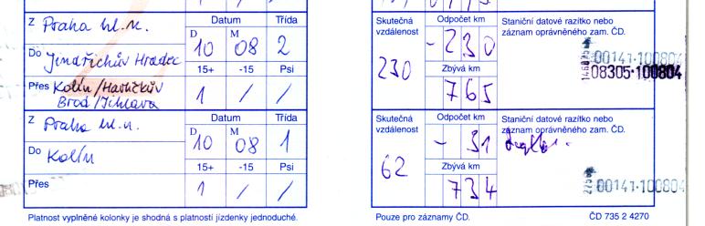 Warunkiem uznania biletu powrotnego jest też oznaczenie pierwszego biletu ("tam") na terytorium Czech przez konduktora.