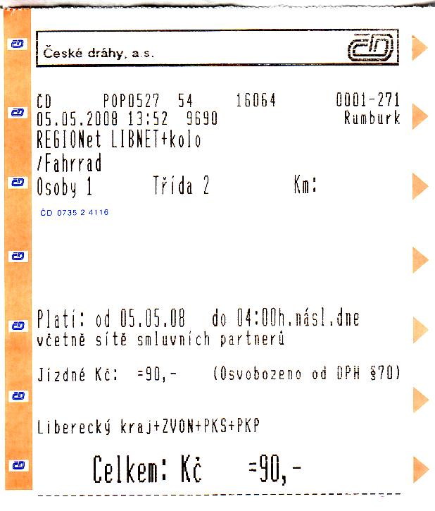 - Na pierwszej stacji w Czechach, jeśli postój jest długi, można wysiąść i kupić bilet w kasie. Gdy jest inaczej, trzeba zgłosić konduktorowi brak biletu, a on go wypisze za dopłatą 40 Kč. W odróżnieniu od polskich przewoźników opłata jest pobierana za każdą odprawioną osobę, a nie za wypisanie blankietu.