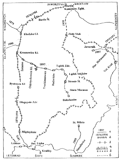 W roku 1997 przypada setna rocznica uruchomienia linii kolejowej z Krosnowic do Stronią Śląskiego zwanej Koleją Doliny Białej Lądeckiej. Otwarto ją oficjalnie 14 listopada 1897 roku1. Była ona odgałęzieniem linii głównej z Wrocławia przez Kłodzko do Międzylesia i Lichkova w Czechach (rys. 1). Połączenie kolejowe Kłodzka z Wrocławiem, będące pierwszym szlakiem żelaznym na Ziemi Kłodzkiej, uruchomiono w roku 1874, dokładnie 2.1 września oddano do użytku malowniczo poprowadzoną Przełomem Bardzkim nitkę torów z Barda do Kłodzka2. Pomiędzy stacjami Bardo Śląskie i Ławica przebito tunel o długości 364 metrów.