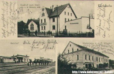 Następny przystanek na trasie to Ciepłowody. Schodząc z wzniesienia tor biegnie po nasypie w stronę stacji, równolegle do polnej drogi obsadzonej jabłoniami. Po łuku i po wiadukcie nad główną drogą pociąg dojeżdżał do stacji na wschodnim skraju wsi. Dotąd z Ząbkowic jest 14,7 km. Stacja Ciepłowody (Tepliwoda, od 1938r. Lauenbrunn, a krótko po wojnie Ciepławoda, 275 m npm.) była kolejnym, obok Srebrnej Góry prywatnym węzłem kolejowym na Śląsku. Przed wojną kończyły tu bieg pociągi z Ząbkowic po 25-30 minutach od wyjazdu. Wybudowanie dwustanowiskowej lokomotywowni (budynek istnieje do dziś) pozwoliło na niezależne prowadzenie kursów do Kondratowic na północy i do Henrykowa na wschodzie. O ile do Ciepłowodów kursowały w dni robocze i wolne 3 pary pociągów, o tyle na każde rozgałęzienie przewidziano 2 pary. Ulokowane węzła kolejowego w Ciepłowodach wynikało ze znaczenia wsi dla okolicznej gospodarki rolnej. Jesienią torami Kolejki przetaczano całe składy wypełnione burakami do okolicznych cukrowni w Łagiewnikach, Strzelinie, Ziębicach, czy Ząbkowicach. Stąd zapewne wzięła się obiegowa nazwa Kolejki - Rubenbahn , czyli Kolej Buraczana.